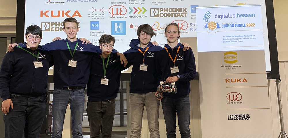 Das Finale der Deutschen RoboCup Junior Meisterschaft 2022 in Kassel mit ca. 550 Schülerinnen und Schülern in 157 Teams aus dem gesamten Bundesgebiet fand an drei aufeinander folgenden Tagen (22. -24. April 2022) auf der Messe Kassel statt.
