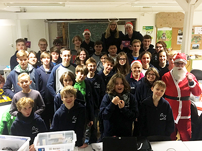 Mit etwas Verspätung kam am 09.12.2016 der Nikolaus während des Robotics-Trainings in der Sedanstraße zu Besuch. Nachdem alle Schülerinnen und Schüler sich von ihren Laptops und Robotern losgeeist hatten – die Qualifikation in Berlin rückt näher – und sich um den Nikolaus versammelt hatten, der mit zahlreichen Engeln und Elfen erschienen war, gab es eine Willkommens-Ansprache von Dr. Katrin Lückmann.