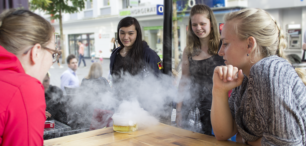 Am vergangenen Donnerstag, 9. Juni 2016, nahmen sechs Teams des SFZ Osnabrück an Pub-Science teil, einer Veranstaltung die vom Chemie-Professor Marco Beeken von der Universität Osnabrück initiiert wurde. Dabei führten die einzelnen Gruppen den Gästen in den teilnehmenden Kneipen chemische Experimente vor und zeigen anschaulich, dass Chemie nicht langweilig ist.