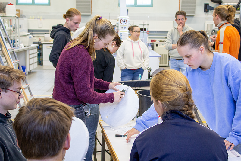 Im Fachbereich Verfahrenstechnik haben die Teilnehmer/-innen die Gelegenheit, die nachhaltige Energietechnik an Beispielen experimentell kennenzulernen. Dabei stehen die Themenbereiche Solarthermie und Photovoltaik im Vordergrund, es werden aber auch Anlagen zur Windenergie und zum Biogas vorgestellt. Zudem werden sich die Schüler/-innen überlegen, wie man eine Solarthermie-Anlage mit einfachen Mitteln aus dem Baumarkt realisieren kann. Nach dem Eigenbau dieser Anlage wird sie dann in Bezug auf verschiedene Parameter untersucht, sodass das zuvor erlangte Wissen praktisch vertieft wird.