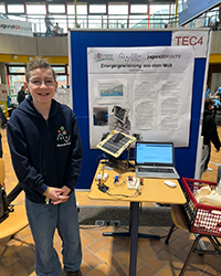 Das letzte Projekt im Fachbereich Technik und in der Junior Sparte kam von Gerrit Willms. Er nutzte alte Bauteile aus dem Müll, um eine Solarzelle mithilfe eines eigens geschriebenen Programms und der passenden Bauteile permanent zu der Position ausrichten zu können, in der die Einstrahlung der Sonne am höchsten ist. Mit dieser genialen Idee und seiner Forschung dazu konnte Gerrit nicht nur die Jury für sich, sondern auch den Regionalsieg gewinnen und darf mit dem Projekt am Landeswettbewerb für Jugend forscht Junior teilnehmen.