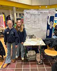 In der Sparte Jugend forscht Junior, in der Jungforschende bis 14 Jahren teilnehmen dürfen, traten Neele Gretzmann und Lara Flaßpöhler im Bereich Technik mit einem Projekt zur Herstellung einer wasserdichten Socke an, die sie für das Camping benutzen wollen, damit man auch ohne Schuhe bei jeder Wetterlage das Zelt verlassen kann.