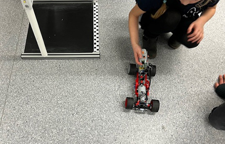 Im ersten Schulhalbjahr bauen die Kinder dazu Lego-Modelle und versehen diese mit verschiedenen Techniken der Fahrzeugkonstruktion. Spielerisch werden Achsen, Lenkungen oder Getriebe eingebaut. Die Fahrzeuge werden regelmäßig auf einem Parcours getestet, auf dem die Kinder die Zeiten ihrer Fahrzeuge per Stoppuhr selbstständig ermitteln können. Aktuell versucht ein Teil der Gruppe Schaltgetriebe in die Modelle einzubauen, um Geschwindigkeit bzw. Drehmoment vorab an die Bedingungen des Parcours anzupassen.
