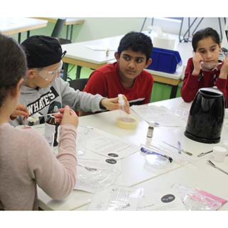 Das SFZ-Team von „Robotics“ zeigte, was man mit Robotern nach einer kurzen Einführung bereits programmieren kann. In kleinen Teams konnte man so den Roboter von Lego kennenlernen, ausprobieren, programmieren, testen, fragen, verzagen und sich freuen, wenn es dann doch noch funktionierte. Mit viel Eifer und Neugier waren die Kinder auch bei dem Workshop Chemie dabei: