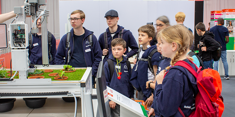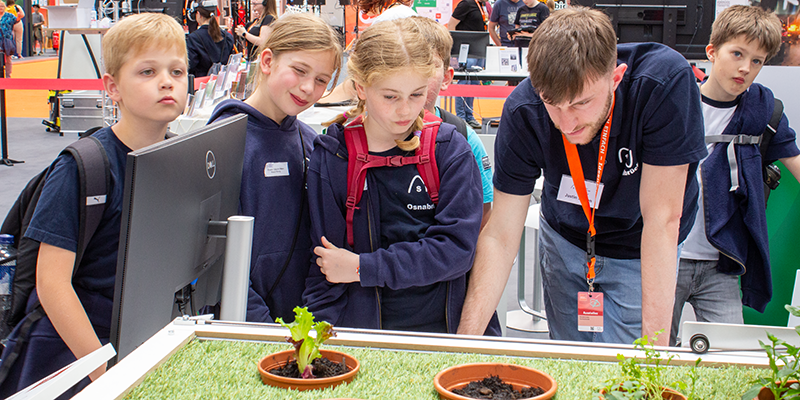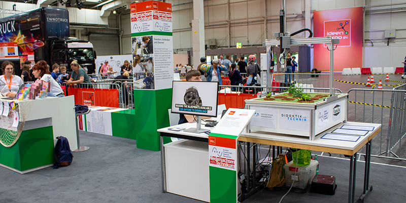 In Halle 6 "ErnährungsWelten" hatten die Gäste der IdeenExpo bei uns die Möglichkeit den FarmBot auszuprobieren. Dabei stellten wir uns die Frage wie uns ein smarter Pflanzroboter bei der Selbstversorgung und gesunder und umweltbewusster Ernährung helfen kann. Dabei scheitert der Anbau von eigenem Obst und Gemüse oft an der Zeit zum Säen, Bewässern und Unkraut entfernen. Dabei kann ein smarter Pflanzroboter, der FarmBot, helfen. Er übernimmt im Beet alle Aufgaben, die normalerweise per Hand erledigt werden müssen: Er sät aus, misst die Feuchtigkeit im Boden, bewässert und entfernt Unkraut.