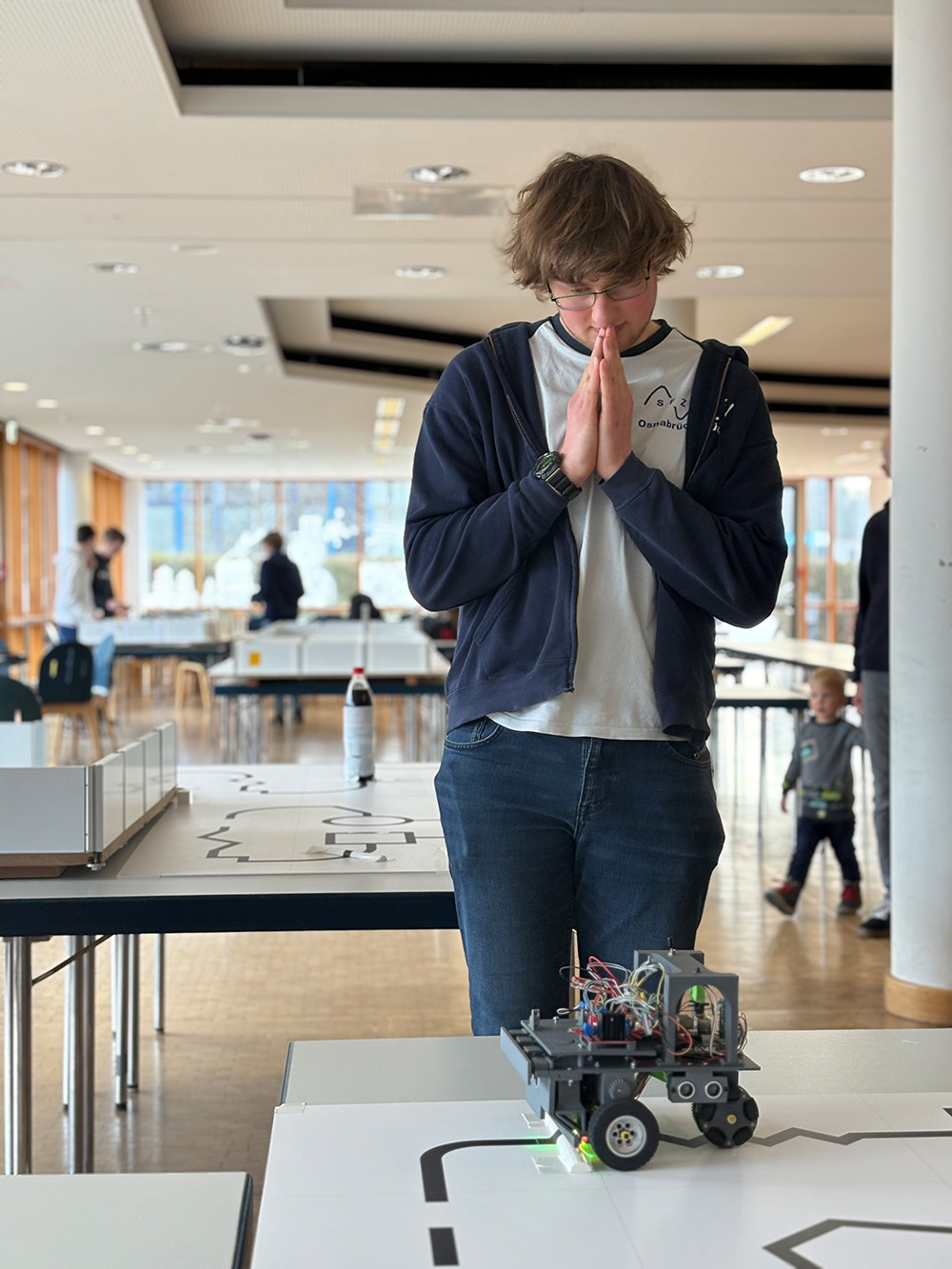 Dies sollte der Stimmung keinen Abbruch tun, denn für zwei der drei Teams des SFZ war es altersbedingt das letzte Mal, dass sie an einem Qualifikationsturnier des RoboCup Juniors teilnehmen durften. Trotz der gewohnten Probleme bei der Anreise mit der Deutschen Bahn und anfänglichen Problemen mit nicht ausreichend getesteten Robotern waren die Ergebnisse sehr positiv. Aus Sicht der Gruppenleiter war es in diesem Jahr erfreulich, dass das wiederkehrende Phänomen der Vorjahre – nächtliches Umbauen der Roboter oder das kurzfristige Implementieren von Zusatzfunktionen im Programmcode – von den Teams ausgelassen wurde. In den Wettkampfläufen spiegelte sich dies in einer konstanten oder stetig besser werdenden Punktezahl wider.