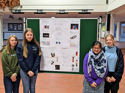 Nach einigen Wochen der Planung, Durchführung und Auswertung kann die Chemie-AG am Gymnasium Oesede unter der Leitung von Herrn Holtmeyer und Frau Wiehe ihre Ergebnisse zum Projekt „Gold Nanopartikel“ im pädagogischen Zentrum des Gymnasiums präsentieren.