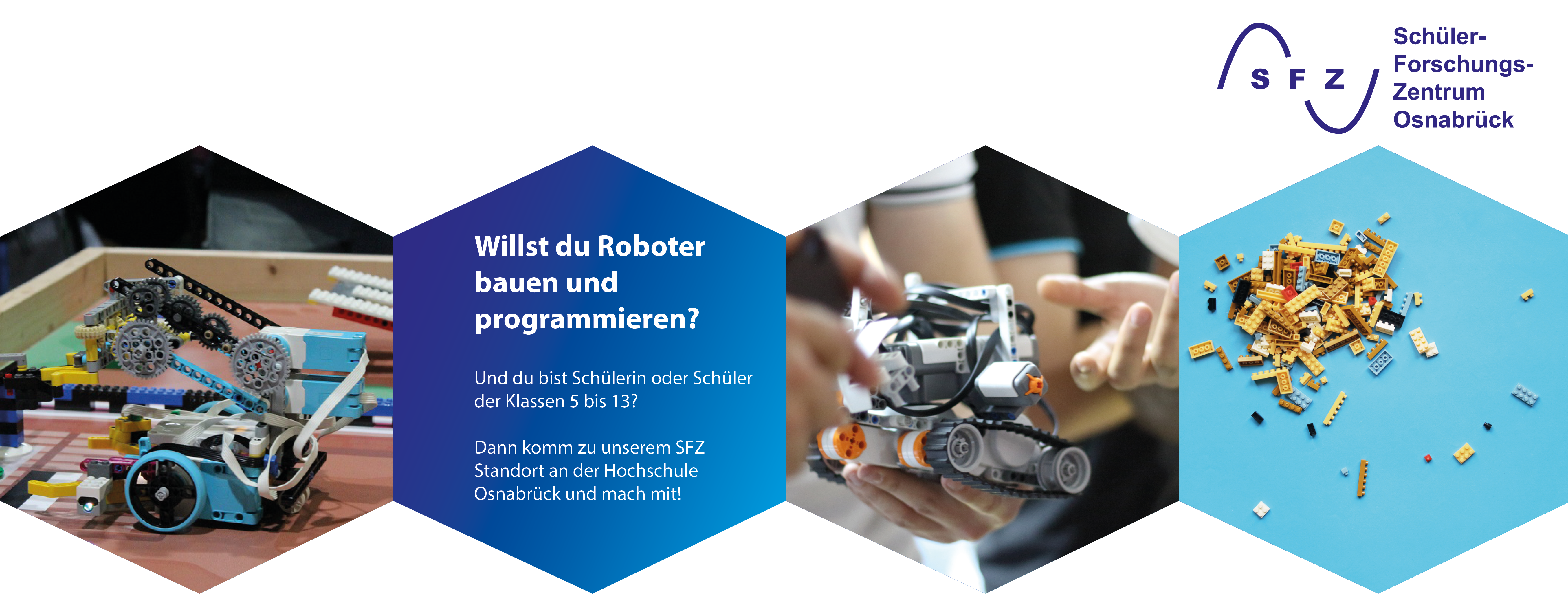Im Bereich Robotics beschäftigen wir uns mit der Konstruktion und Programmierung von Robotern. Dazu werden in Teams von zwei bis fünf Schülerinnen und Schülern LEGO-Roboter oder fischertechnik-Roboter verwendet. Dafür bieten wir im SFZ verschiedene Roboter und Baumaterialien an. Dazu lernt ihr bei uns die Programmierung der Lego-Roboter. Auch Programmiersprachen wie "C" oder "RoboPro" zur Programmierung von fischertechnik-Robotern können im SFZ gelernt werden.