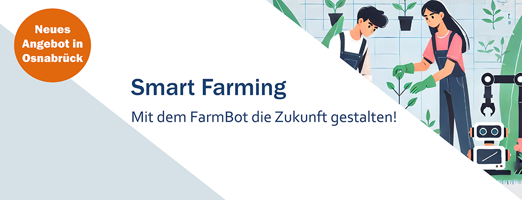 Im Mittelpunkt steht der Agrarroboter „FarmBot“. Das Angebot verknüpft Technik, Landwirtschaft und Nachhaltigkeit. Von der Robotik bis zur Pflanzenbiologie. Lerne programmieren und den Anbau von Pflanzen. Bringe dich, deine Ideen und Interessen mit ein!
