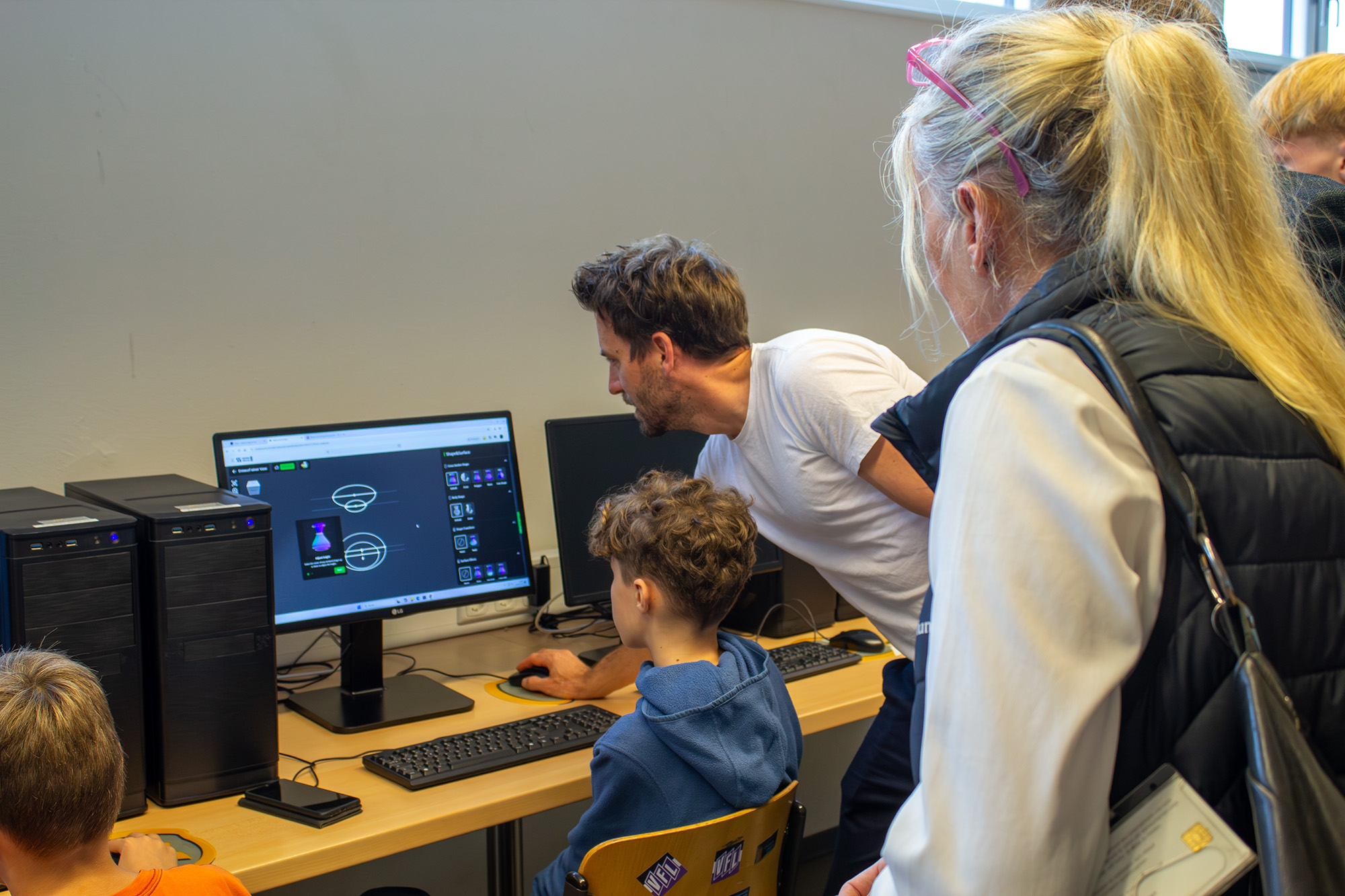 Die etwa 20 teilnehmenden Schüler*innen aus Georgsmarienhütte und Umgebung verteilen sich auf drei verschiedene Bereiche und können im eigenen Tempo Ideen und Projekte umsetzen und Neues dazulernen. Los geht es im CAD-Bereich, hier lernen die Schüler*innen ein erstes benutzerfreundliches CAD-Programm kennen und bringen ihre Entwürfe in die dritte Ebene. Unterstützt werden sie hier von den Lehrkräften und Mika, der als Schüler des Technischen Gymnasiums viel Knowhow mitbringt. Umgesetzt werden können die Entwürfe später am 3D-Drucker.