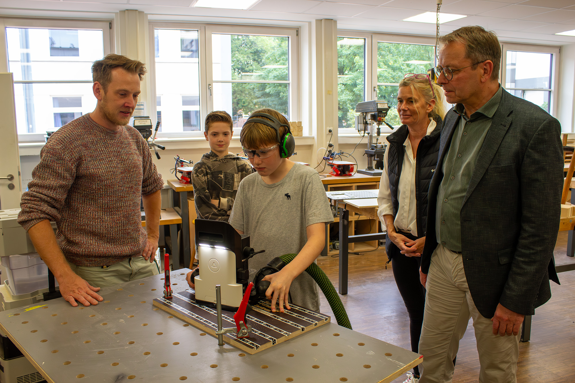 Bildunterschrift: Die Jungforscher*innen können in Georgsmarienhütte auch in der Holzwerkstatt der Realschule Georgsmarienhütte arbeiten. (Foto: Carina Wessmann, SFZ Osnabrück)